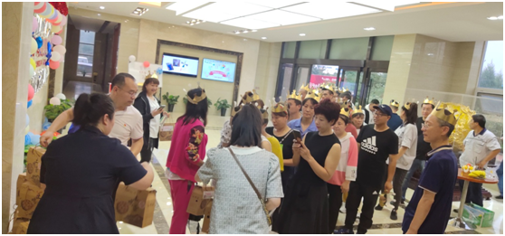 8月31日下午,新洪源公司一樓大廳張燈結彩,喜氣洋洋。師傅正在現(xiàn)場為55位壽星做生日蛋糕。
